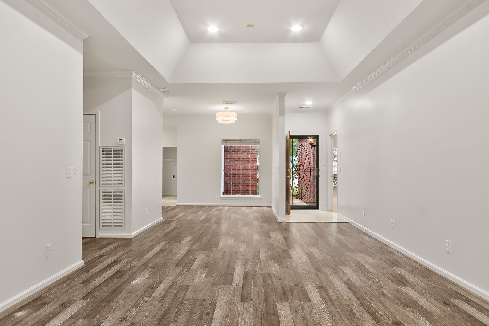 The spacious layout includes a bright and inviting living room, perfect for relaxing or entertaining. Step outside to the spacious fenced-in backyard, where you’ll enjoy peaceful wooded views that provide both privacy and tranquility.